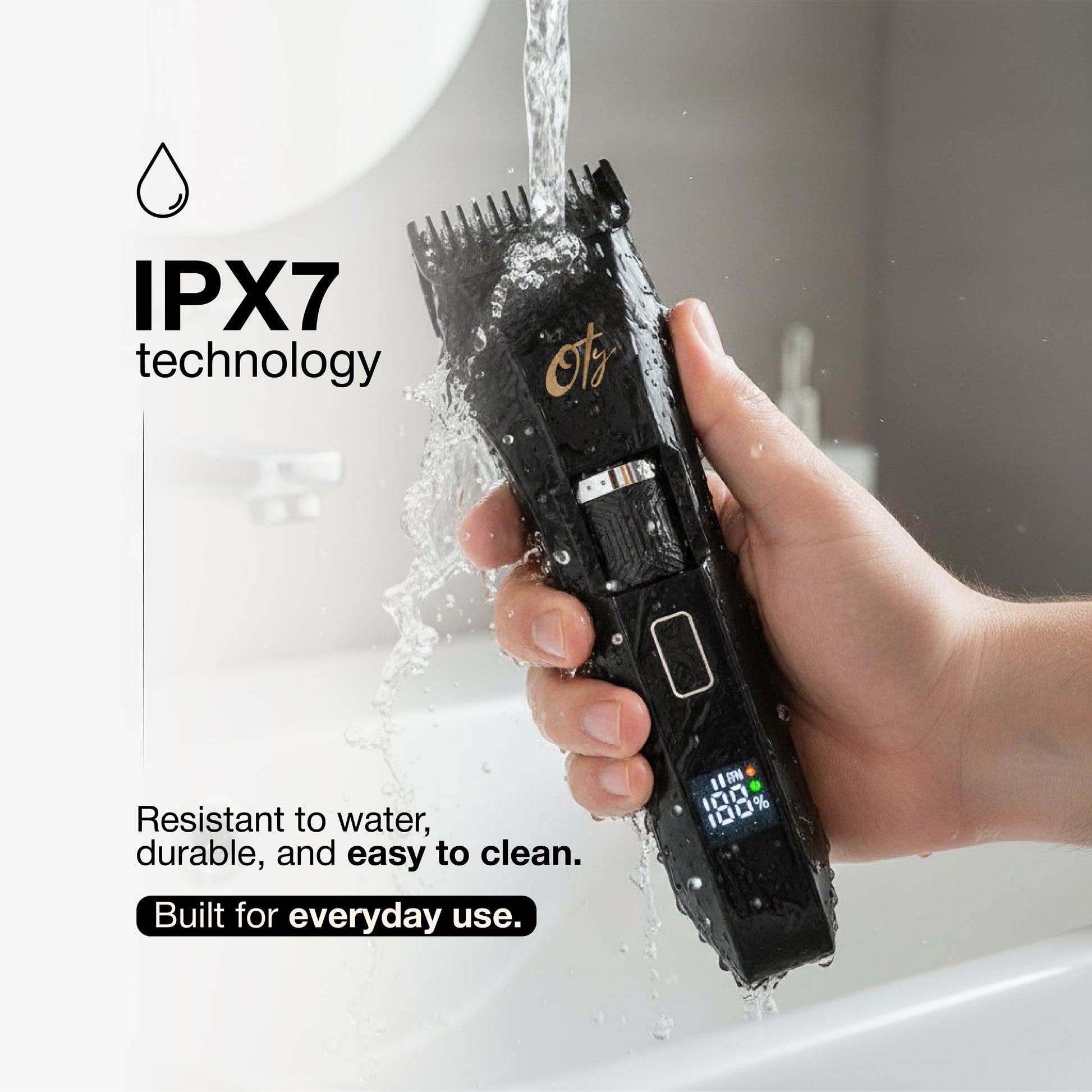 - IPX7 WATERPROOF FOR WET AND DRY USE: Enjoy flexibility with the OTY waterproof beard trimmer, ideal for both wet and dry shaving. Use it in the shower or rinse it easily under water for quick cleaning. With IPX7 certification, it provides hygiene, convenience, and comfort for daily grooming.